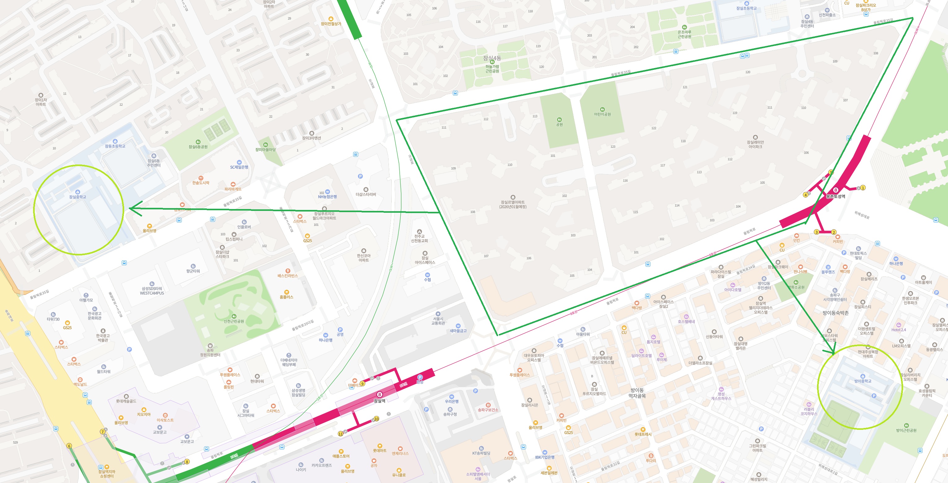 잠실중학교까지는 도보 기준 약 10~15분, 방이중학교 역시 접근성이 좋아 아이 성향과 학업 스타일에 맞춰 학교를 선택하기 좋습니다.