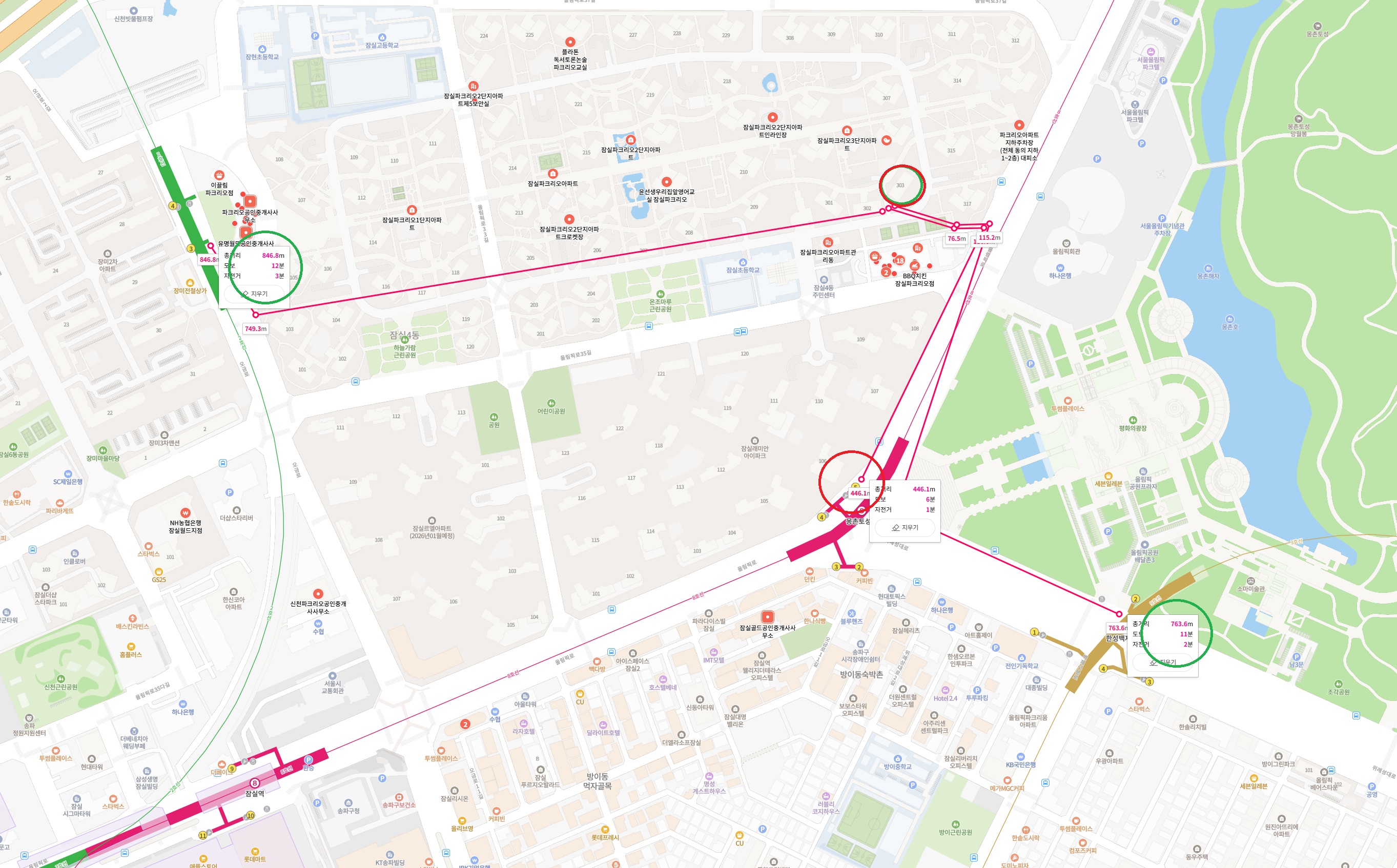 - 석촌호수 한강변가지 근처에 있어 취향에 따라 어떤 환경의 자연을 누릴 수 있는 단지