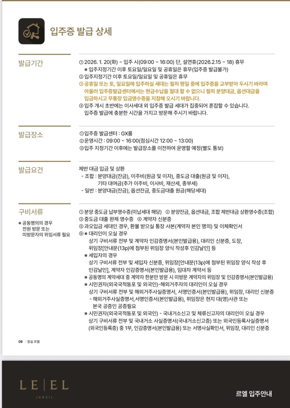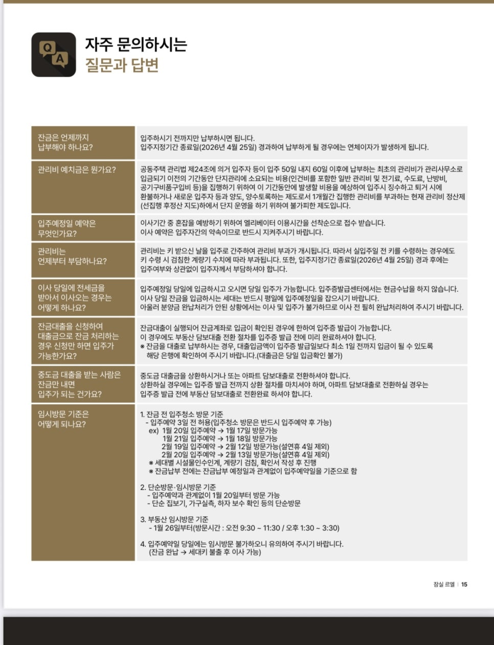 - 입주지정기간 종료 후 부터 입주여부와 상관없이 관리비를 비롯하여 전기, 수도, 가스 등의 공과금 납부