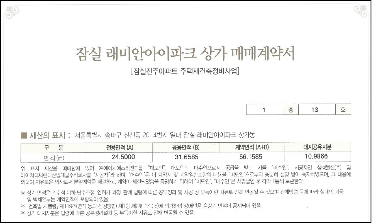 위 내용을 보시면 저희가 잠래아상가 113동을 직접 매매했다는것을 알 수 있으십니다.