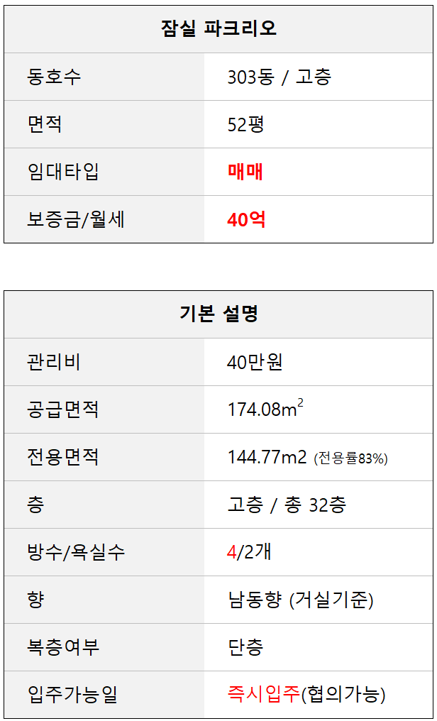 오늘은 "파크리오 52평 매매"건에 대해서 안내 드리겠습니다.