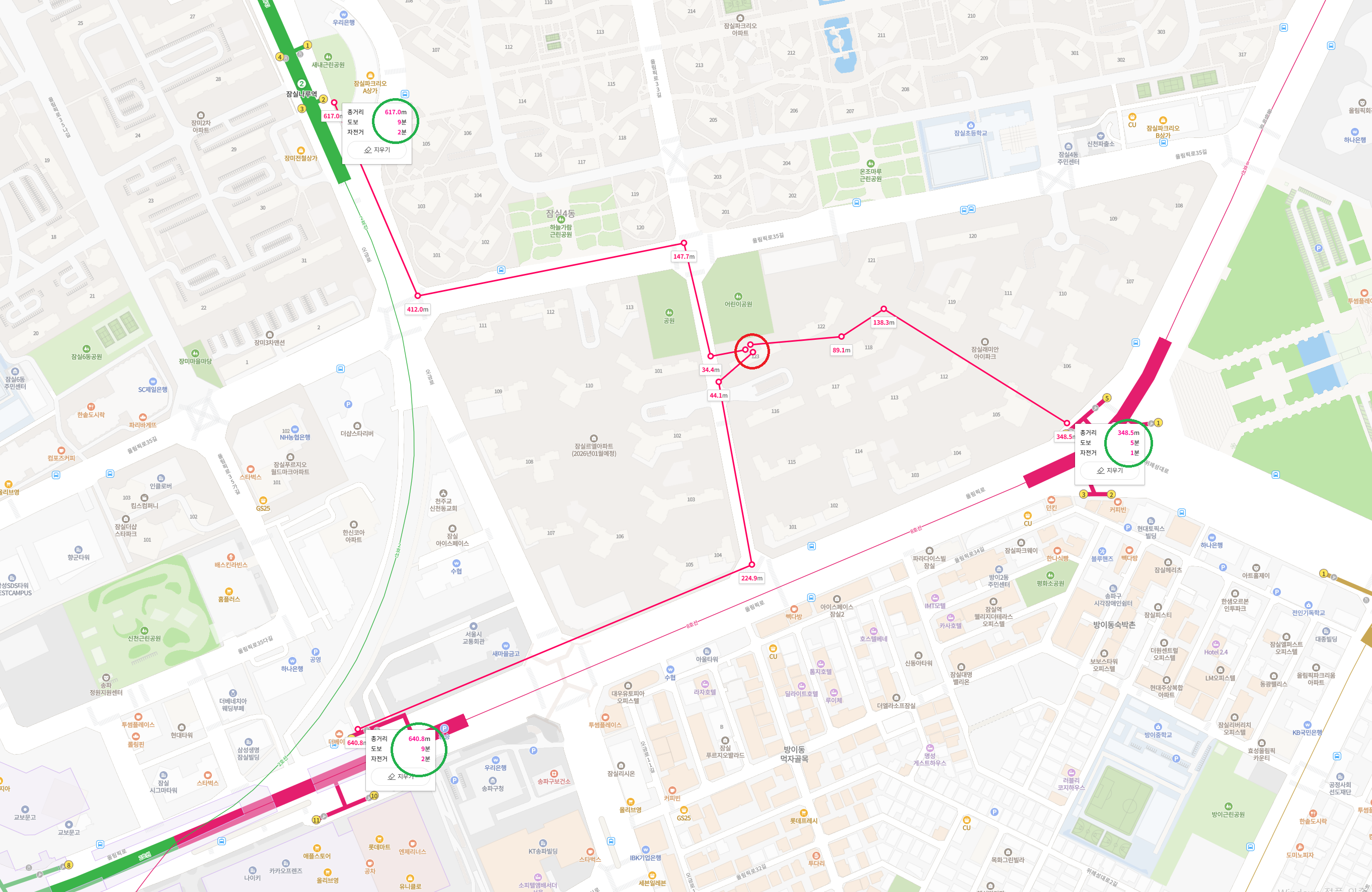 617m 밖에 안되는 거리로 사실상 거의 앞마당에 지하철 탑승이 가능하므로 10분내 도착 가능한 최우선 루트.